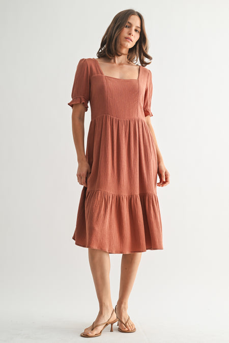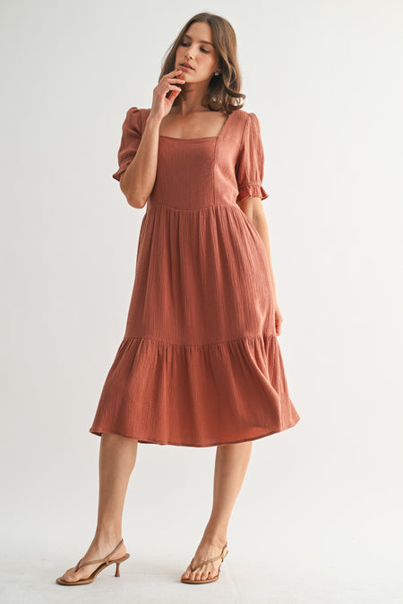 Quick Shop FD65333 | GAUZE SQUARE NECK SHORT PUFF SLEEVE MIDI DRESS $166.50 Unit Price: $27.75 Quick Shop