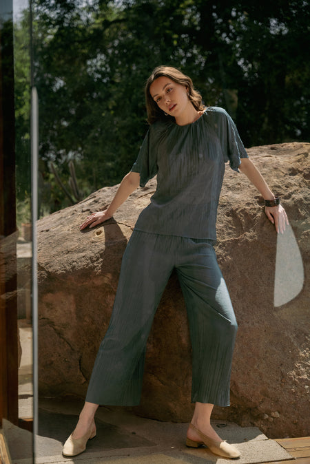 FT68565 | CRINKLE REGLAN SHORT SLEEVE BLOUSE