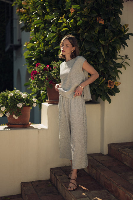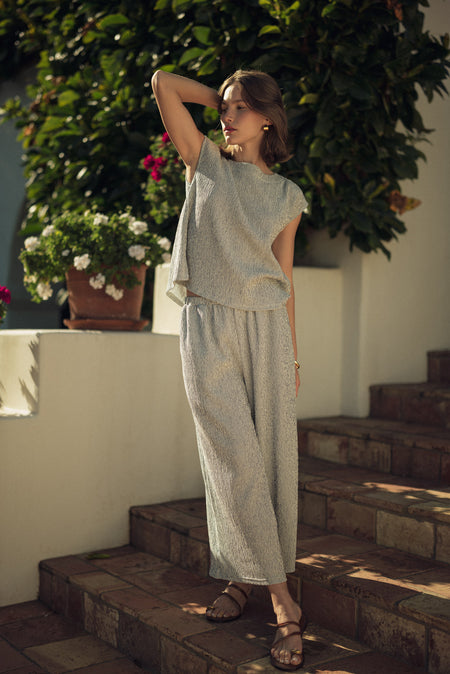 FP68118 | GAUZE TEXTURE KNIT WIDE LEG PANT